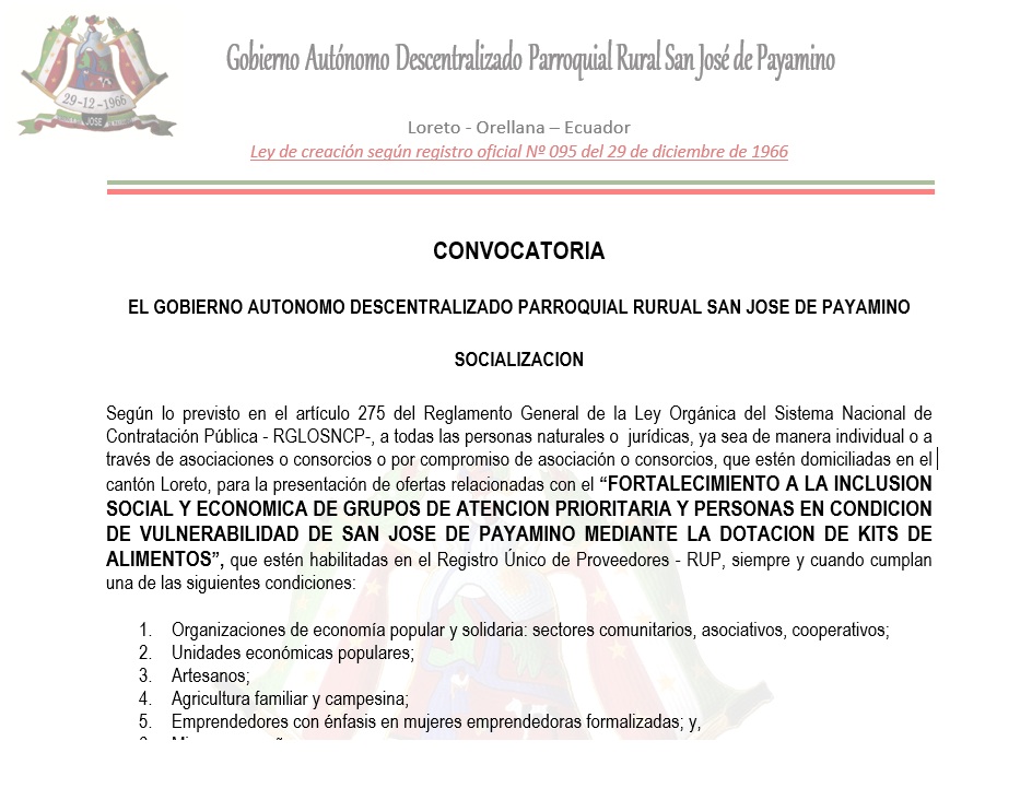 ¡Saludos a todos los habitantes de la Parroquia Rural San José de Payamino! Como presidente de la parroquia, quiero expresar mi gratitud por su compromiso y dedicación para hacer de nuestras comunas y comunidades un lugar mejor.